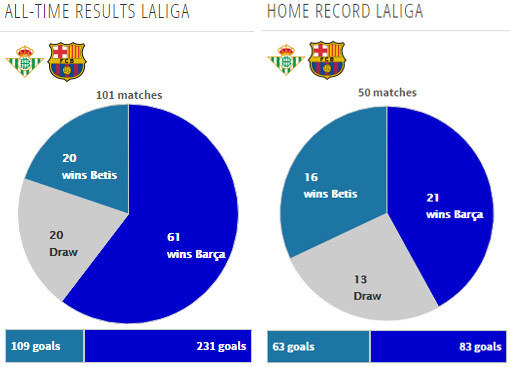 Barcelona selalu menang dalam tiga laga tandang terakhirnya melawan Betis di La Liga. Dalam tiga laga tersebut, Barcelona mencetak delapan gol dan hanya kebobolan dua.