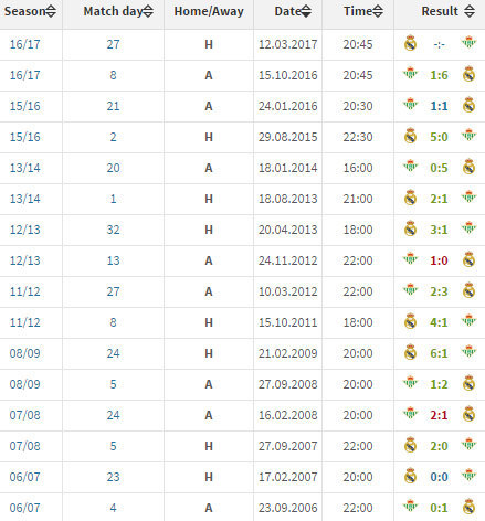 Bola.net - - Peringkat 2 Real Madrid (59 poin) akan menjamu peringkat 14 Real Betis (28 poin) di jornada 27 La Liga 2016/17, Senin (13/3). Madrid tak terkalahkan (M5 S1) dalam enam pertemuan terakhir dengan Betis di La Liga.
