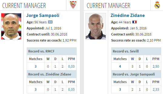 Musim lalu, Madrid menyerah 2-3 dalam laga tandangnya melawan Sevilla di La Liga. Dua gol Madrid dari Sergio Ramos dan James Rodriguez tak cukup untuk menandingi tiga gol Sevilla yang dicetak Ciro Immobile, Ever Banega dan Fernando Llorente.