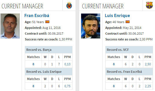 Bola.net - - Peringkat 4 Villarreal (29 poin) akan menjamu peringkat 2 Barcelona (34 poin) di jornada 17 La Liga 2016/17, Senin (09/1). Berikut catatan head-to-head kedua tim.