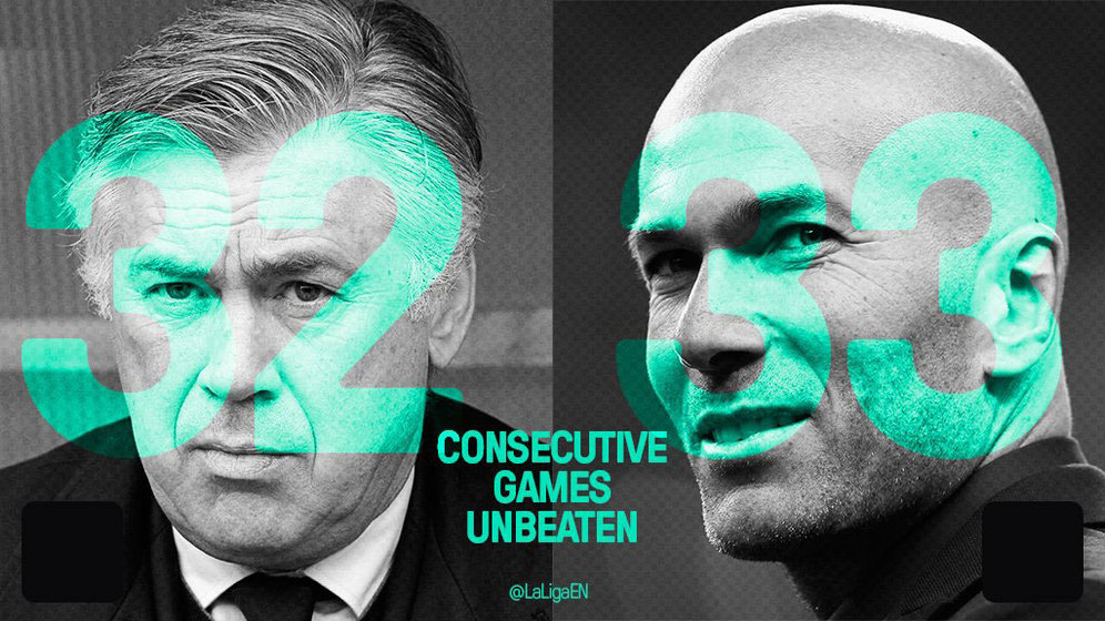 Catatan inilah yang mampu ditumbangkan oleh Zidane. Pria asal Prancis ini baru saja membukukan laga ke-33 bersama Madrid tanpa kekalahan.