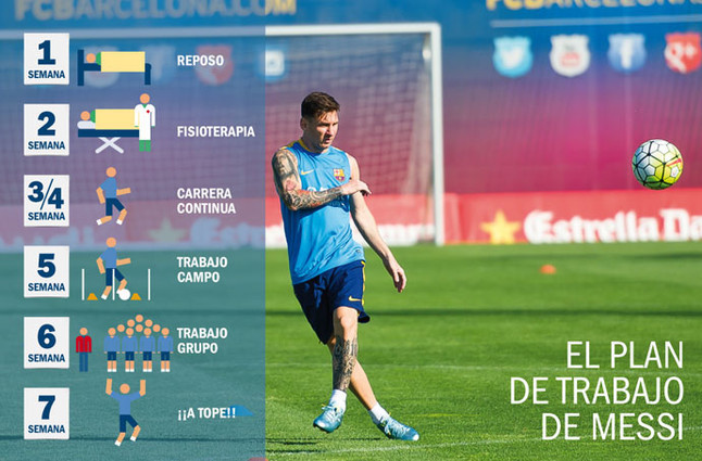 Andai semua berjalan sesuai dengan rencana, Messi seharusnya sudah bisa berlatih dengan bola di pekan ke-5. Namun demikian, rasa sakit di lutut kirinya takkan hilang begitu saja. Rasa tidak nyaman dan ketakutan akan bisa memperlambat proses pemulihan sang pemain.