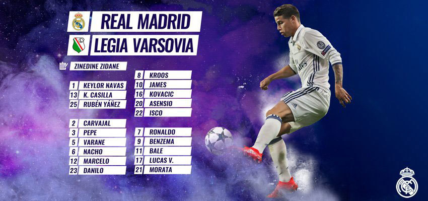 Skuat pilihan pelatih Zinedine Zidane ini ditandai dengan kembalinya James Rodriguez. Pemain asal Kolombia ini baru sembuh dari cedera. Ia mendapatkan cedera pada saat pemanasan di laga melawan Eibar.