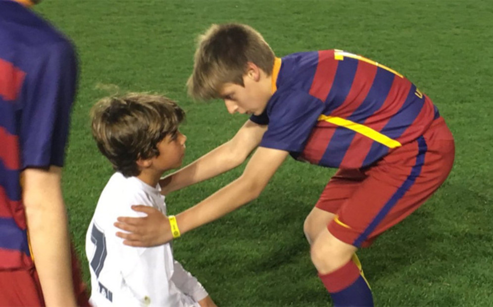 Namun kejadian menarik terjadi usai laga berakhir. Di saat semua pemain Barcelona muda meloncat kegirangan merayakan kemenangan mereka, seorang pemain - Marc Serra, justru menghampiri seorang pemain Madrid yang tengah tersungkur dan meratapi kekalahannya, seperti yang terlihat di bawah ini.