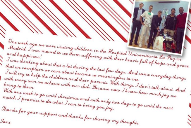 Gelandang Jerman tersebut rupanya amat tersentuh dengan kondisi anak-anak yang ia temui, sebagai bagian dari kegiatan sosial Real Madrid jelang Natal tahun ini.