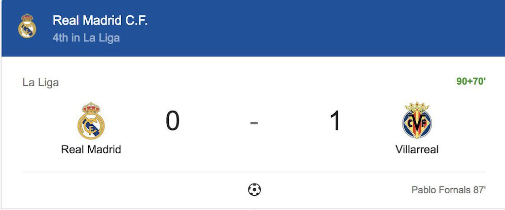 Bermain di Santiago Bernabeu, gawang Madrid yang dikawal oleh Keylor Navas dibobol oleh Pablo Fornals saat laga tinggal menyisakan tiga menit waktu normal.