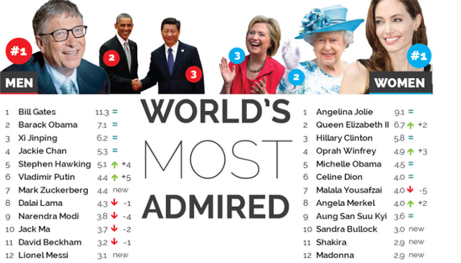 Ia masih kalah dari mantan pemain Manchester United, David Beckham, yang ada di urutan 11. Sementara itu, posisi teratas diduduki oleh Bill Gates, disusul Barack Obama, Xi Jinping - presiden Tiongkok, dan juga Jackie Chan.