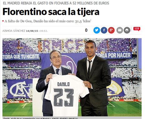 Tak seperti yang sudah-sudah, kali ini Madrid memang tak lagi jor-joran mendatangkan Galacticos. Saga transfer David de Gea dari Manchester United yang seolah tak pernah berakhir, membuat Danilo - yang didaratkan dari Porto dengan harga 31,5 juta euro menjadi pembelian termahal Florentino Perez di bursa kali ini.