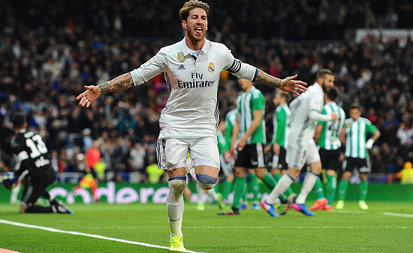Ramos mencetak gol penentu kemenangan 2-1 Madrid saat menjamu Real Betis di jornada 27 La Liga 2016/17, Senin (13/3). Itu adalah golnya yang ke-10 untuk Madrid di semua ajang musim ini.