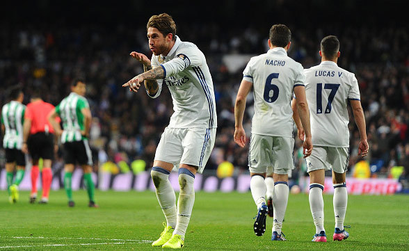 Melawan Betis, Madrid tertinggal setelah tembakan Antonio Sanabria di menit 25 berbuah own goal Keylor Navas. Madrid menyamakan kedudukan lewat Cristiano Ronaldo pada menit 41. Di menit 81, berawal dari tendangan sudut Toni Kroos, Ramos menjebol gawang Betis dan memastikan kemenangan tuan rumah.