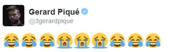 Bek Barcelona itu membuat sebuah pesan Twitter dengan menggunakan beberapa emoticon tertawa, yang diunggah tak lama usai kabar mengenai Madrid menurunkan pemain ilegal di Copa del Rey, beredar luas di dunia maya.