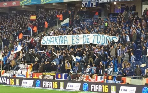 Tersinggung oleh perkataan Pique yang menyebut mereka sebagai minoritas yang tidak mampu memenuhi stadionnya, fans Espanyol membentangkan dua baner terkait Pique yang mengejek Shakira di tribun Stadion Cornella-El Prat.