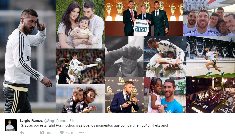 Ramos men-tweet gabungan beberapa foto yang menandai momen terbaiknya di 2015, termasuk gambar yang menunjukkan rekan-rekannya di Bernabeu dan momen di mana ia memperpanjang kontrak di Real Madrid.