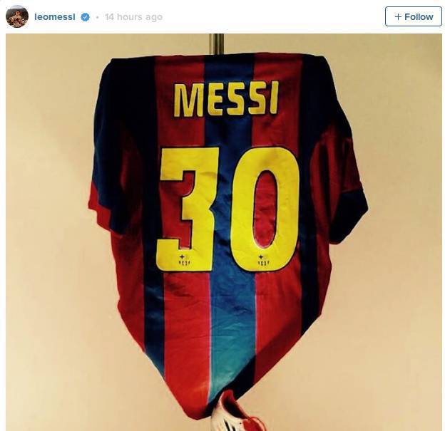Tak lupa, pemain kelahiran Rosario juga menambahkan tulisan: "Saya ingin merayakan 30 juta kawan saya di Instagram, dan mengucap terima kasih pada semua orang atas dukungan kalian. Saya menunjukkan nomor punggung pertama yang saya gunakan di laga debut Barcelona yang kebetulan juga memiliki nomor 30. Saya harap anda menyukainya. Salam hangat."