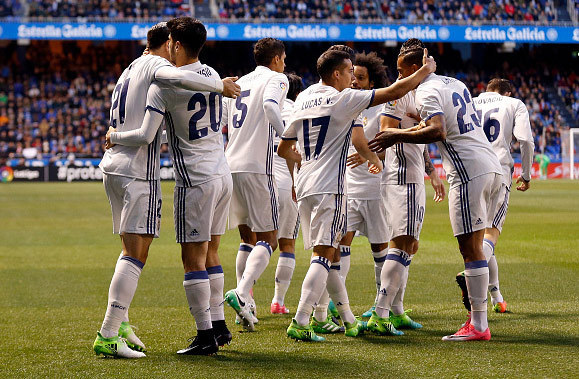 Madrid menang 6-2 di kandang Deportivo La Coruna pada jornada 34 La Liga 2016/17, Kamis (27/4). Alvaro Morata, Lucas Vazquez, Isco dan Casemiro menyumbang masing-masing satu gol, sedangkan James Rodriguez memborong dua.
