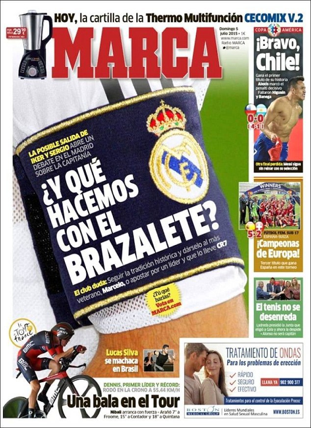 Halaman depan dari harian Spanyol, Marca, mengatakan bahwa akan ada posisi lowong di barisan kapten Madrid, andai Ramos benar-benar hengkang dari Santiago Bernabeu di musim panas ini, terlepas dari fakta bahwa sang bek belum lama membantah bahwa ia sudah menjalin negosiasi dengan Setan Merah.