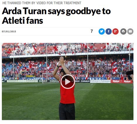 Pemain Turki tersebut mengucap terima kasih pada semua fans Atletico, atas perlakuan mereka padanya selama berada di Vicente Calderon. Turan sendiri memang merupakan salah satu favorit fans selama ia berkarir di klub, sebagaimana dilansir Marca.