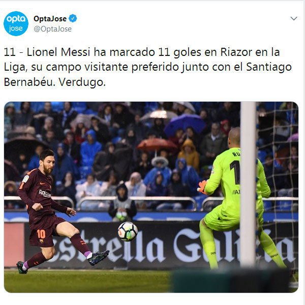 Bola.net - - Mega bintang Barcelona, Lionel Messi rupanya punya catatan manis setiap kali berkunjung ke Stadion Riazor. Sebab, di tempat inilah Messi paling sering mencetak gol. Selain di Stadion Camp Nou tentunya.