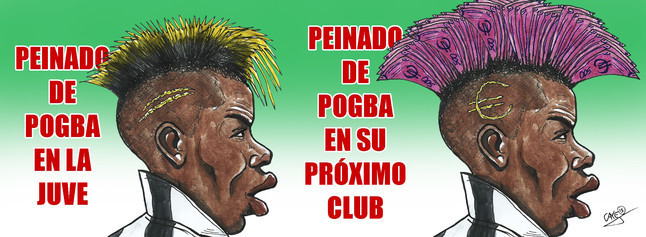 Nah, Sport lantas mencoba menuangkan fenomena tersebut dalam karikatur yang mereka buat. Seperti yang bisa dilihat di bawah ini, andai Pogba pindah dari Juventus, yang kemungkinan besar bakal terjadi dengan nilai yang amat tinggi, sang pemain boleh jadi langsung mengubah gaya rambutnya.
