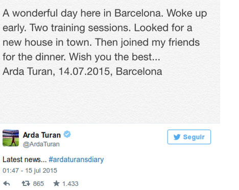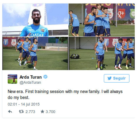 Usai melewati sesi latihan yang dipimpin langsung oleh Luis Enrique tersebut, Turan lantas menulis di akun media sosialnya: "Hari yang indah di Barcelona. Bangun di pagi hari. Menjalani dua sesi latihan. Mencari rumah anyar di sekeliling kota, kemudian bergabung dengan kawan saya untuk makan malam."