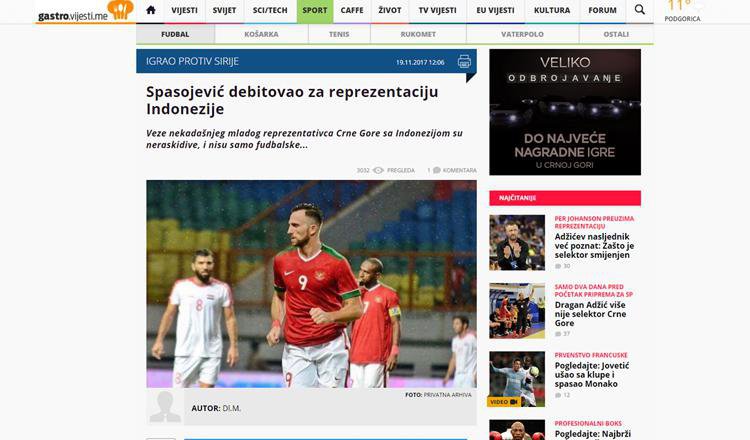 Meski demikian, pertandingan pertama Spaso bersama Indonesia tentu saja sebuah momen istimewa. Media dari Montenegro Vijesty.me menulis sebuah laporan bahwa Spaso yang juga pernah membela Montenegro telah menjalani debutnya bersama Indonesia.