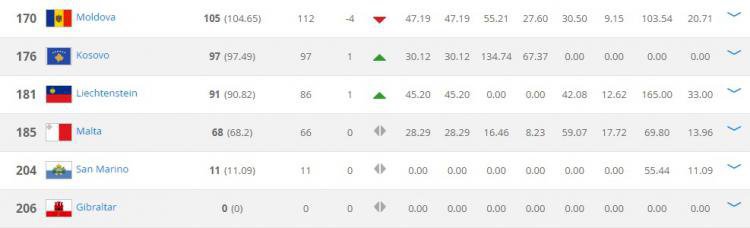 Pada bulan Februari lalu, peringkat Indonesia berada pada urutan ke-160 dunia. Kemudian bulan ini, Indonesia berada di urutan ke-162 dengan mengumpulkan 123 poin.